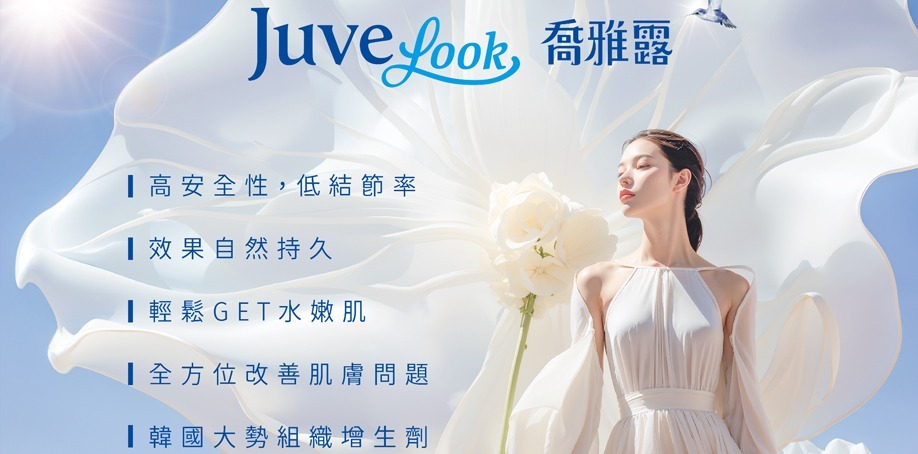 Juvelook喬雅露透過複合式成分設計,結合聚雙旋乳酸PDLLA與玻尿酸HA的雙重功效,幫助肌膚促進膠原蛋白生成,達到緊緻、拉提,填補凹陷、疤痕等多種肌膚問題,並為肌膚帶來水光膨潤的效果。